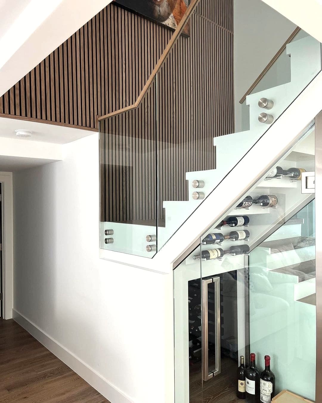 Le Chêne Blanc apporte une luminosité incomparable. Les tasseaux de chêne blanchi sur feutrine grise créent une atmosphère sereine et contemporaine.